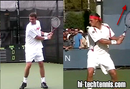 Also notice how their hands are around chest height, and their rackets are pointed upwards at